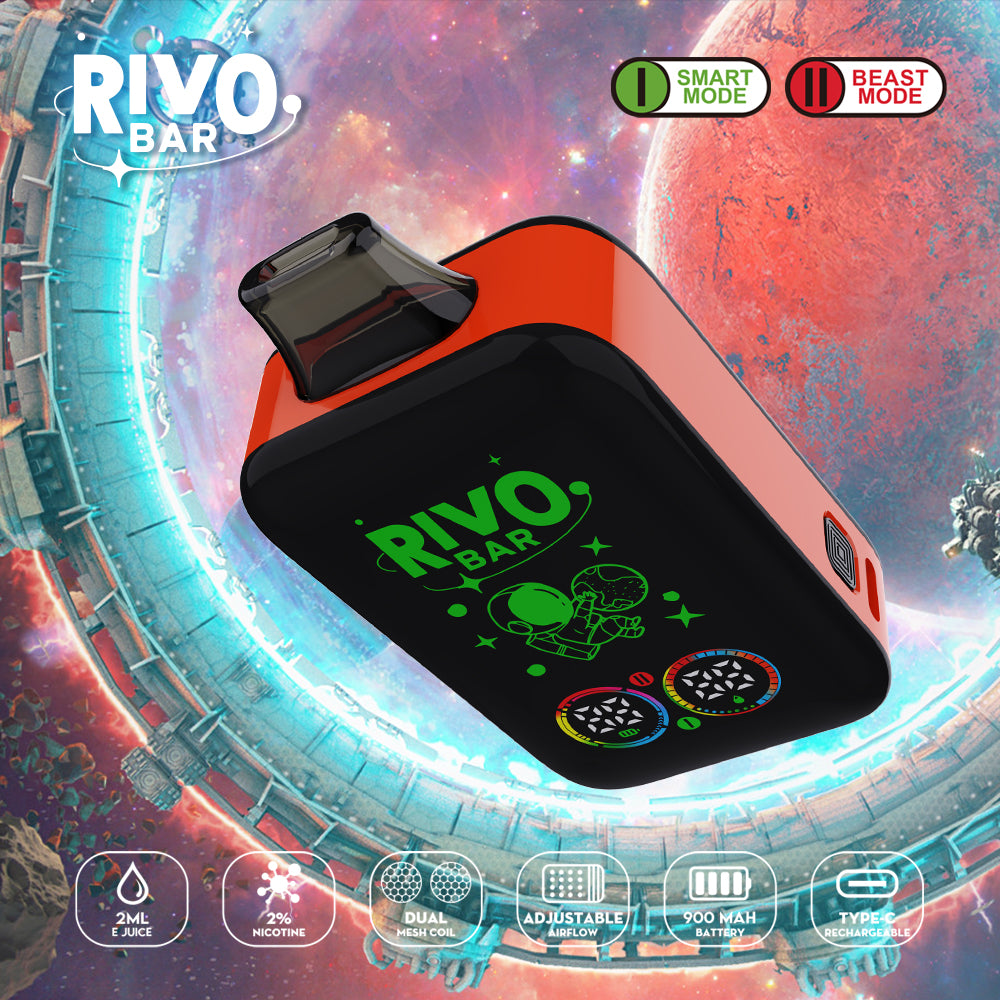 Engineered for endurance and bold flavour, the RIVO Bar is the disposable that goes further. With dual-end airflow, dual mesh coil and with an intense nicotine hit, it delivers power and smooth performance in every draw.