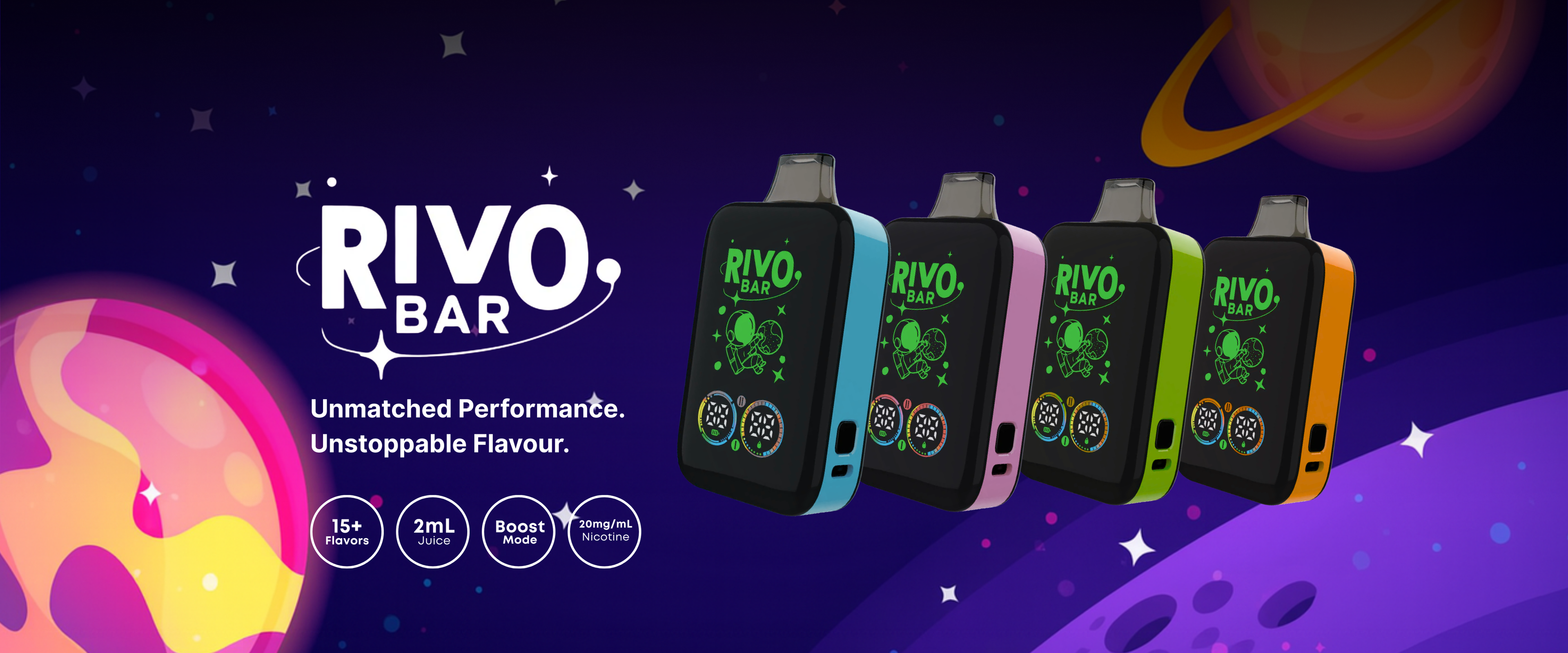 Engineered for endurance and bold flavour, the RIVO Bar is the disposable that goes further. With dual-end airflow, dual mesh coil and with an intense nicotine hit, it delivers power and smooth performance in every draw.